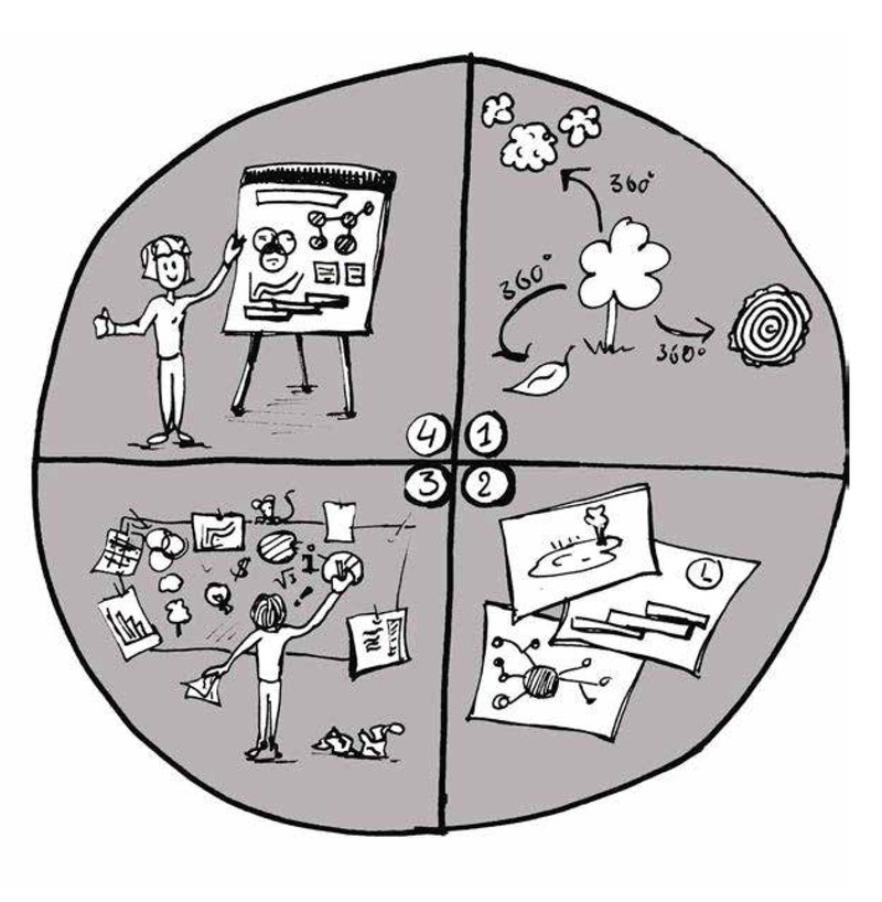 If you are planning a route, you first need a map. For complex systems, no map usually exists, and we typically lack insight into the system at the outset. This step collects information and represents it so we can learn from it. First we make maps to explore; later (in Step 4) we create "desired state" maps as before-and-after pictures of the transformation.