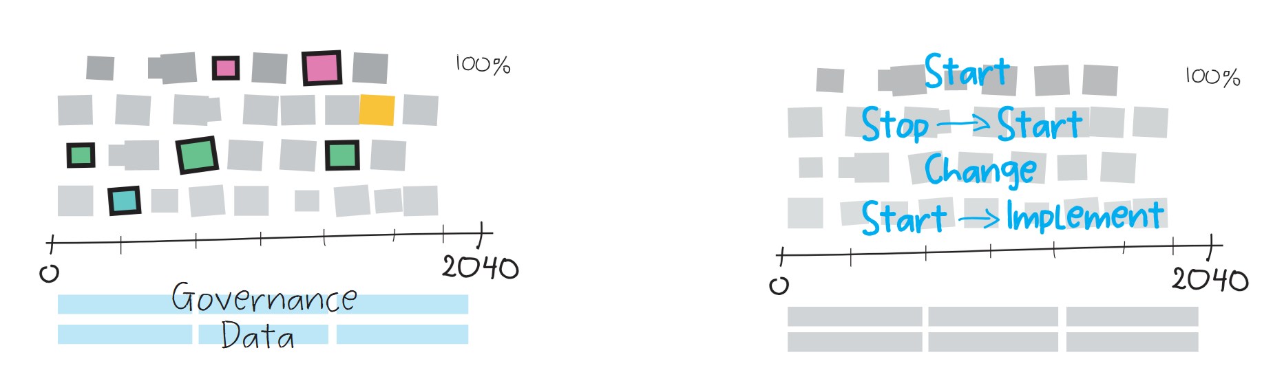 A roadmap plots all actions along a timeline, typically spanning years or decades. Ten steps toward a complete roadmap: